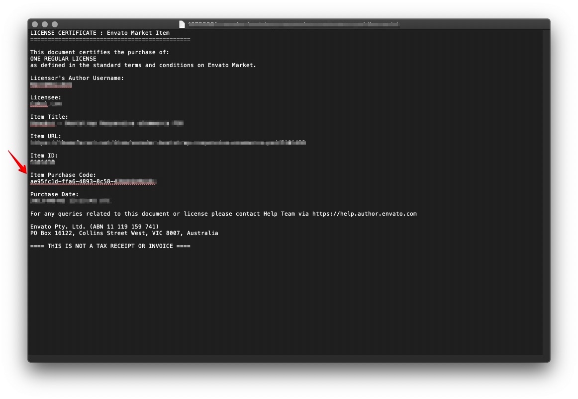 2. Find your purchase code.