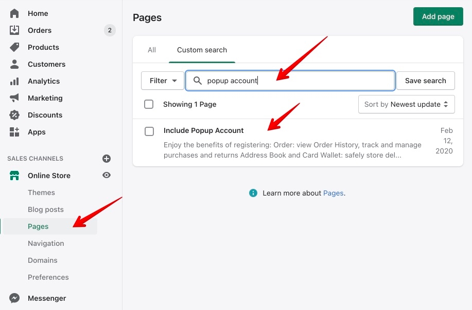 Here you can change the content for the popup by selecting a needed page. If no content is chosen, a default “Include Popup Account” page will be used by the system. Once the popup is disabled, the customer will be redirected to the account page, when clicking the “Account” button.