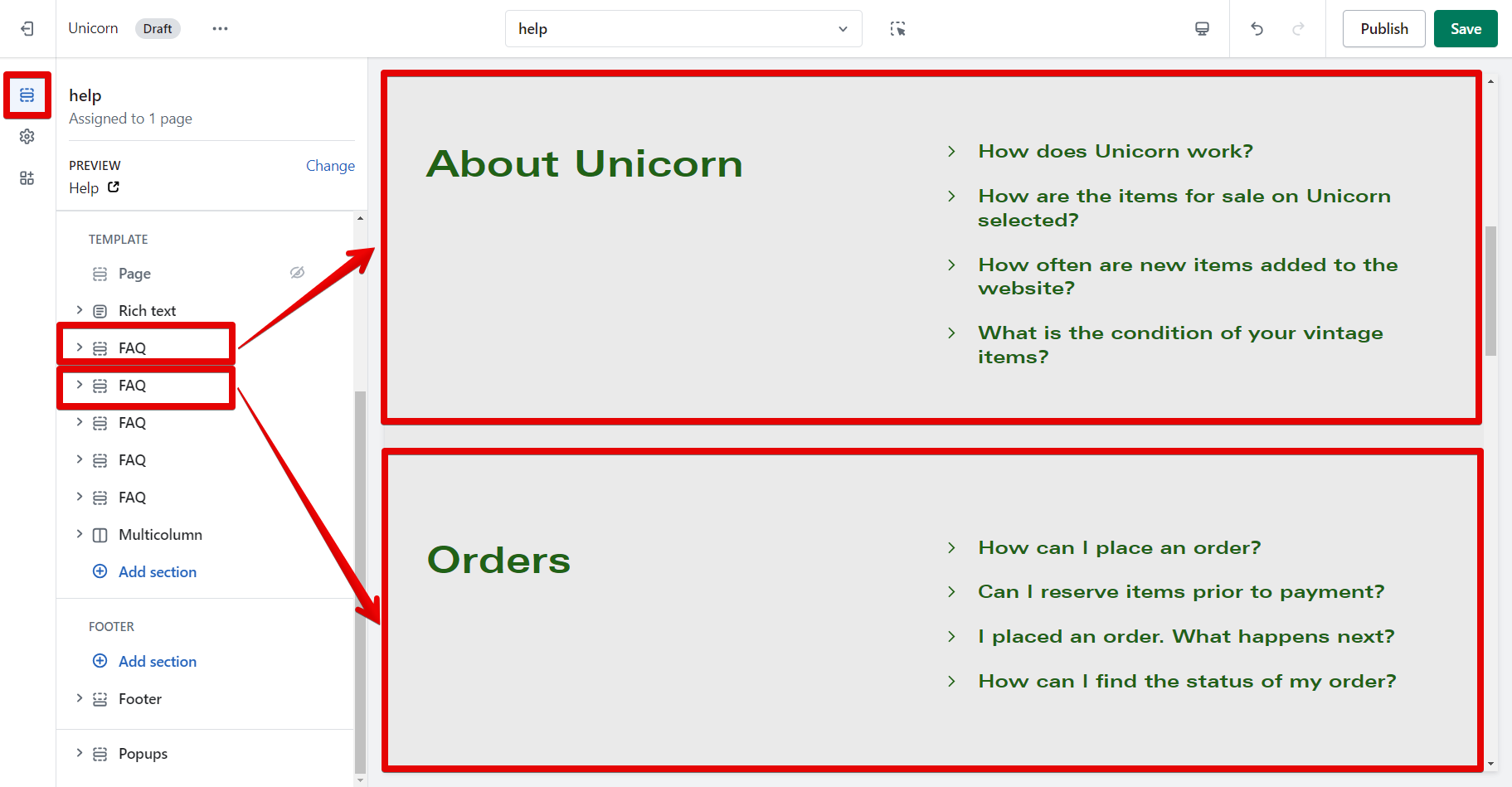 In the following examples, you can view how the section might be displayed on desktop and mobile: