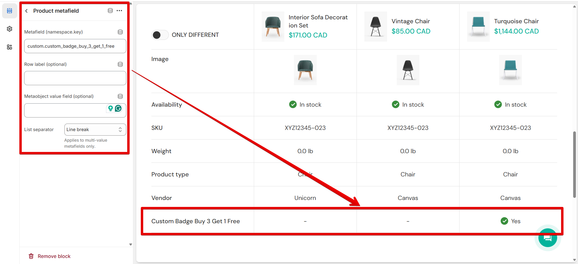 <figure><img src="https://2943342198-files.gitbook.io/~/files/v0/b/gitbook-x-prod.appspot.com/o/spaces%2FysL5Hr1ZCl3x5RHWgJ3m%2Fuploads%2FbP2DqeIsxLiA2pVW6vhY%2Fcompare_metafield.png?alt=media&#x26;token=09bf6afc-92c1-473a-b3b3-f03cb11b4f8a" alt=""><figcaption></figcaption></figure>
